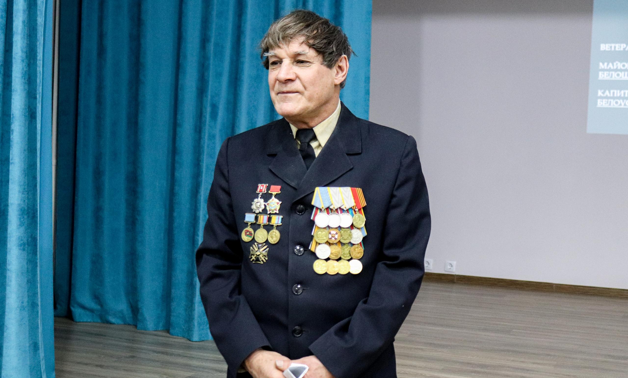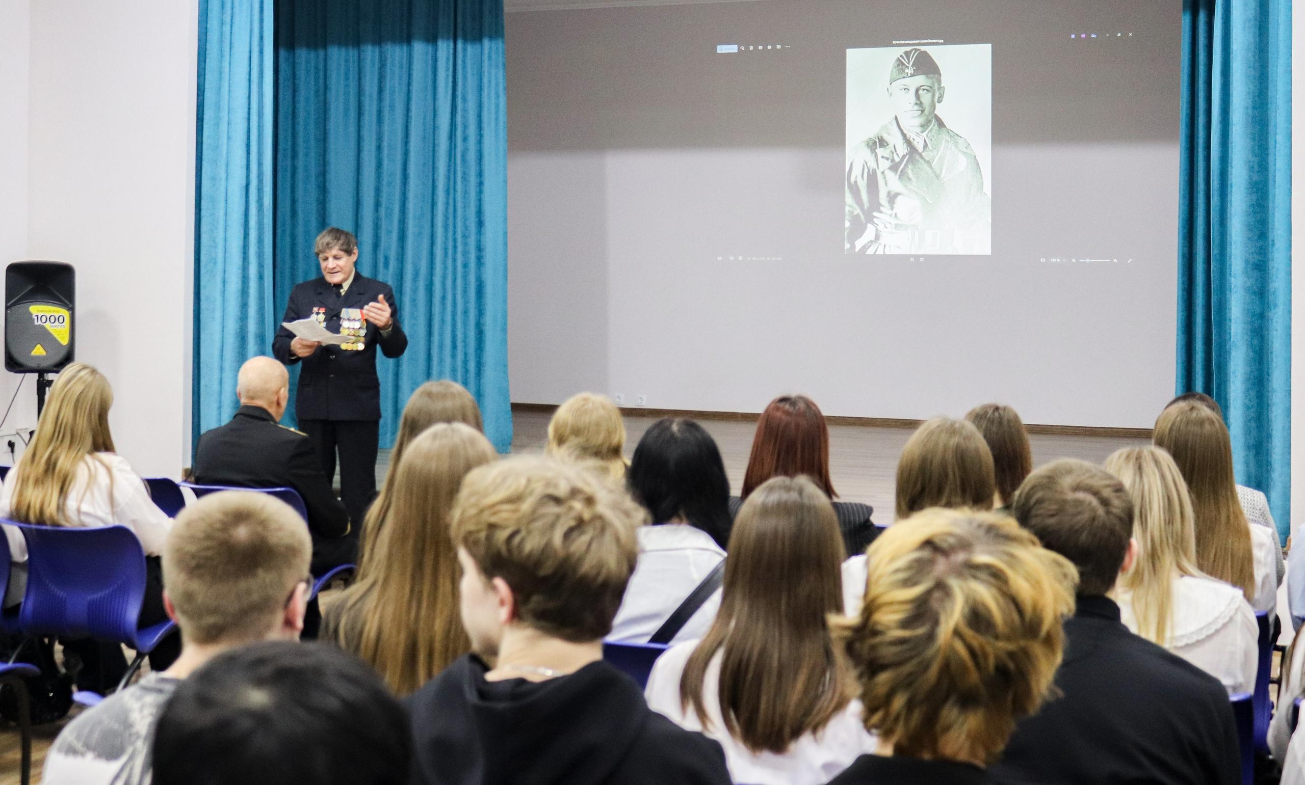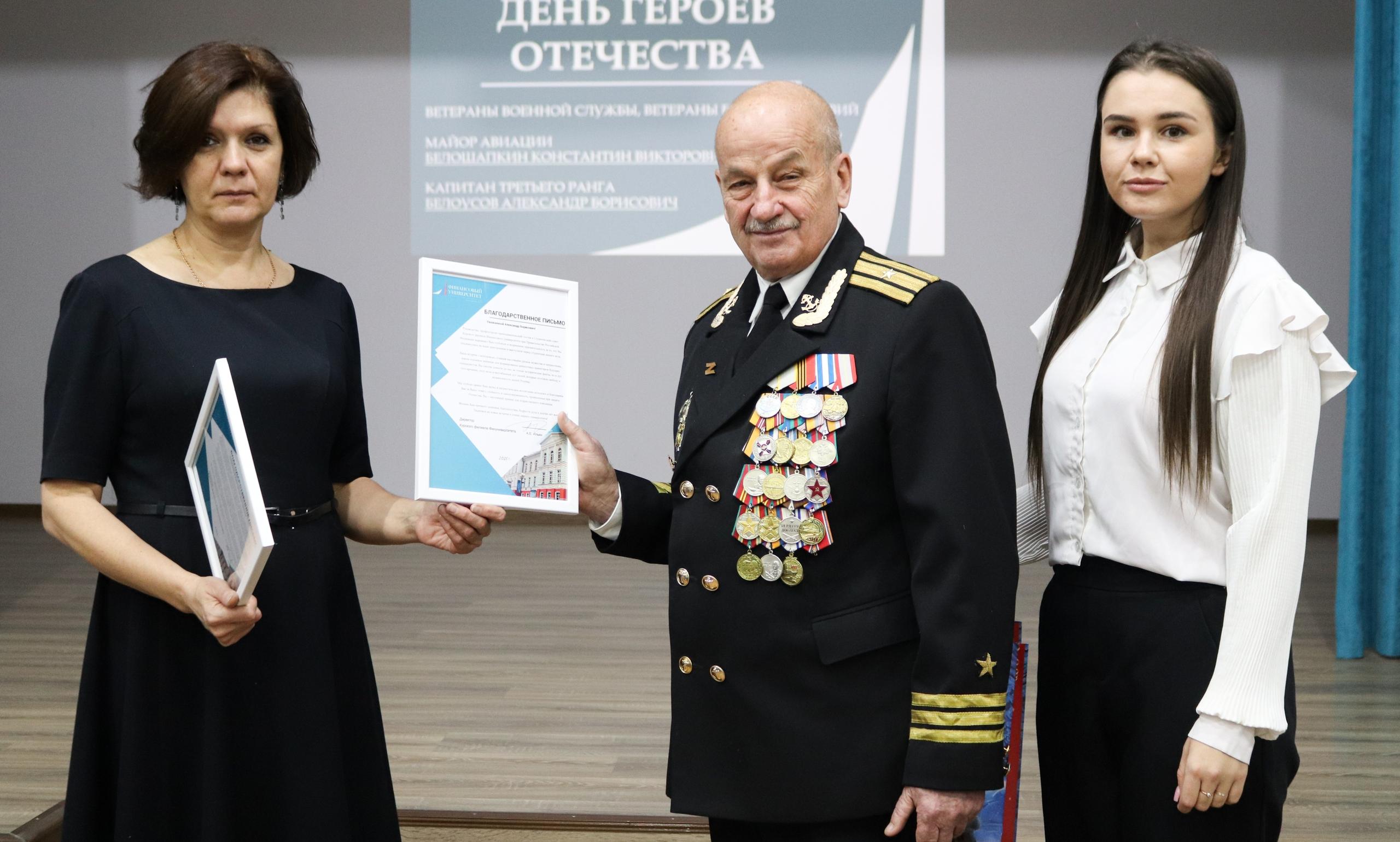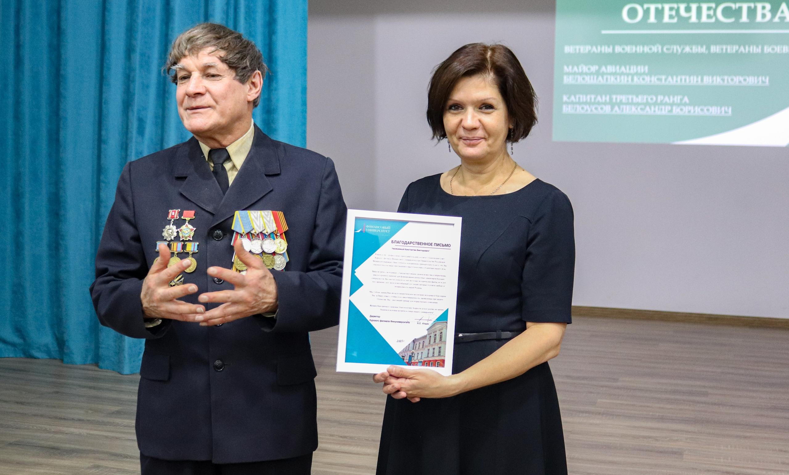 Преподаватели Инна Александровна Хрипкова, Олеся Николаевна Батура и Юлия Юрьевна Бурцева организовали встречу студентов с ветеранами — капитаном 3‑го ранга ВМФ СССР Александром Борисовичем и майором авиации Константином Викторовичем Белошапкиным.
