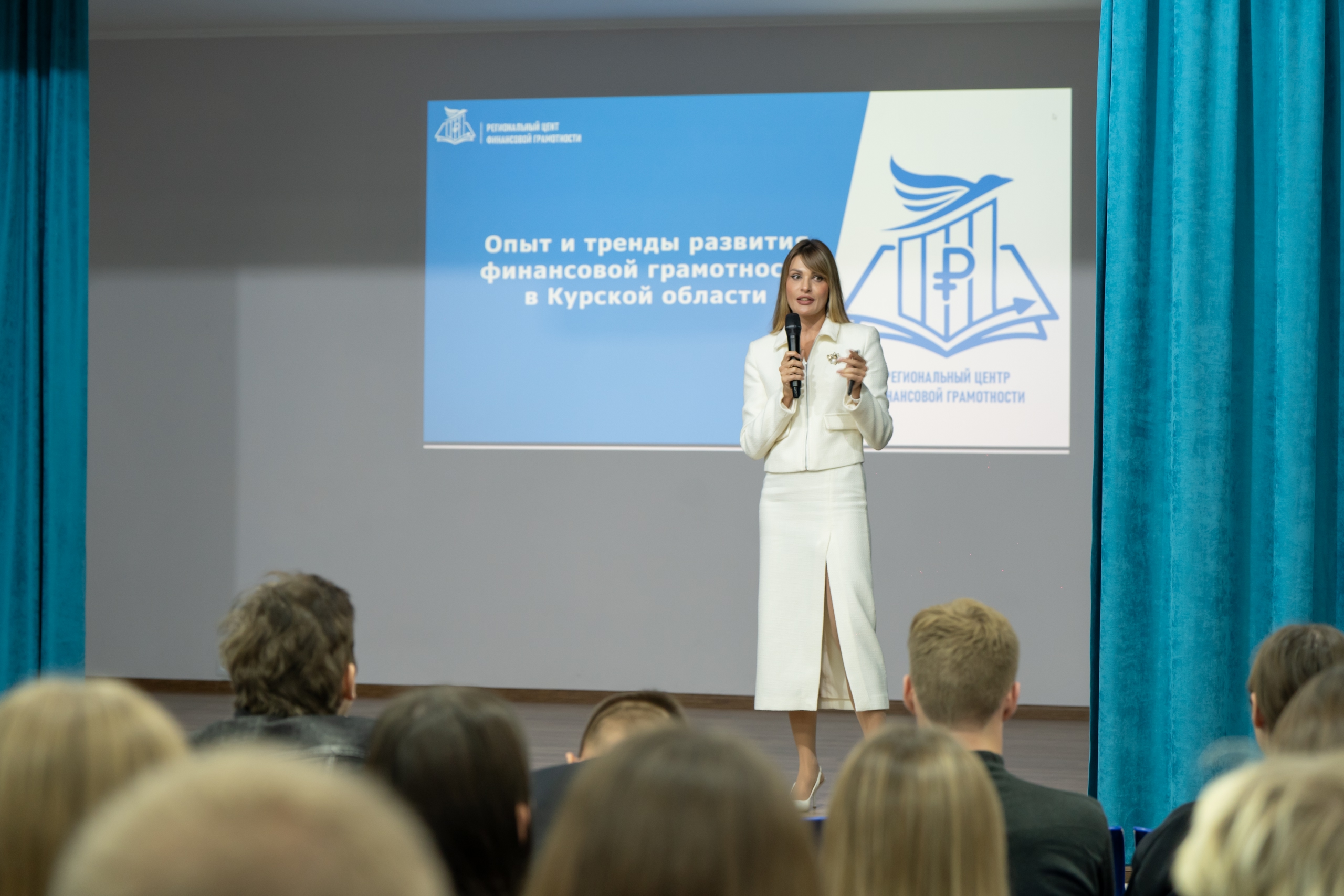 «Проекты по финансовой грамотности в Курской области». Спикер: Яна Васильевна Павлова, руководитель Регионального центра финансовой грамотности Курской области. Все участники получили подарки от центра