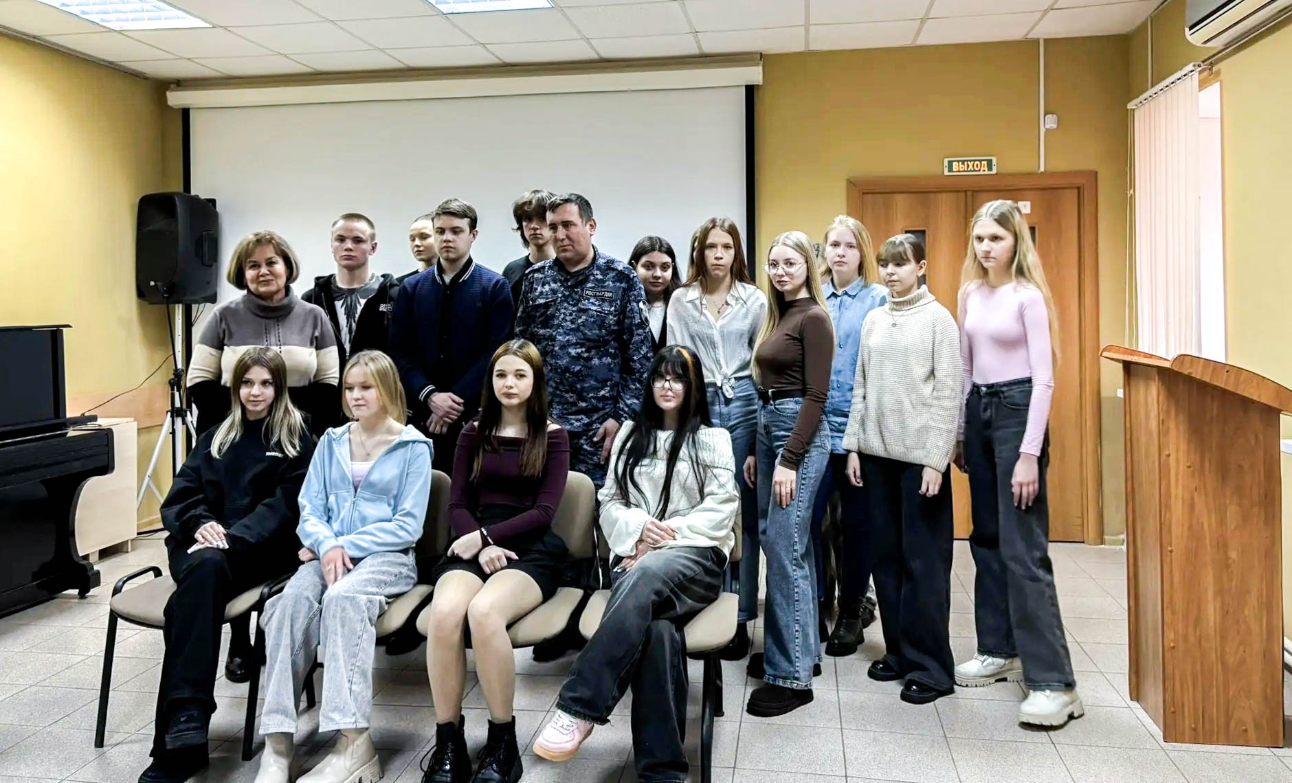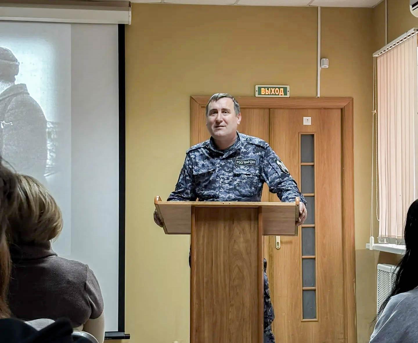 Важной частью встречи стал практический блок: к студентам обратился представитель Управления Росгвардии. Он провёл инструктаж по актуальной и важной теме — противодействию мошенничеству. Ребята узнали о распространённых схемах обмана и получили практические советы, как защитить себя и близких в повседневной жизни.