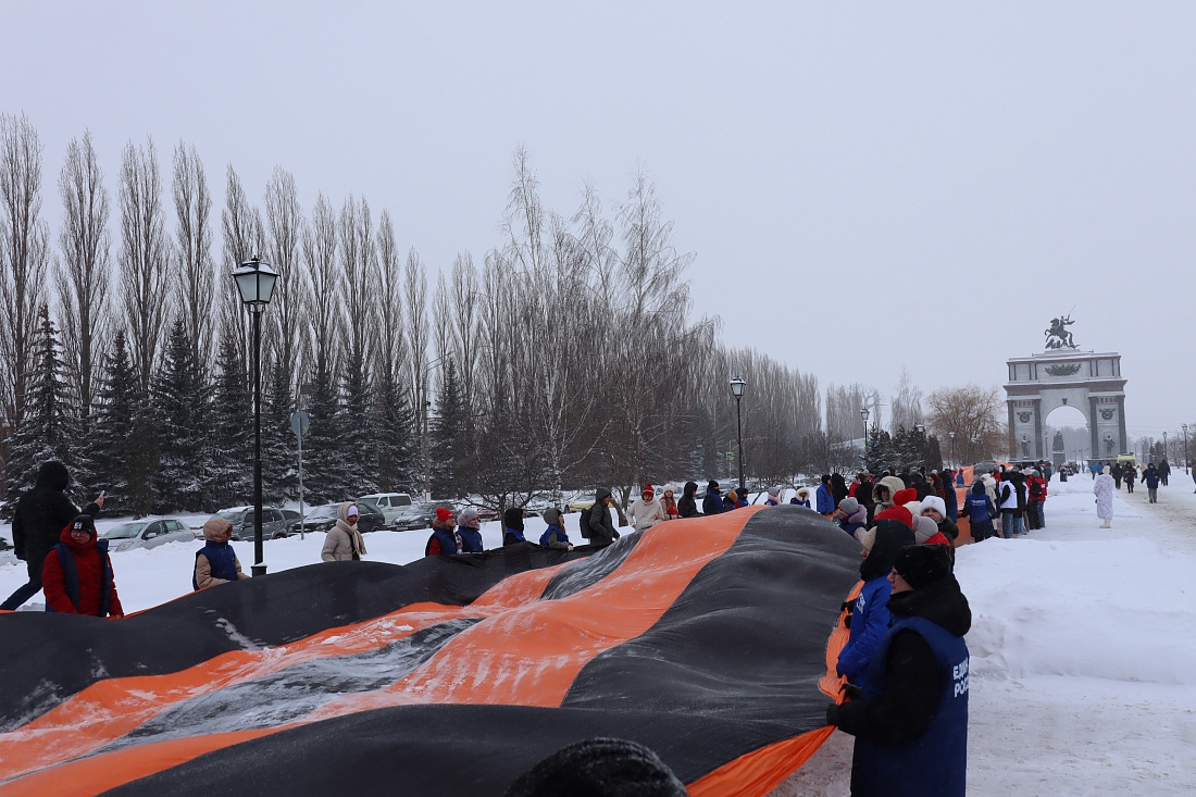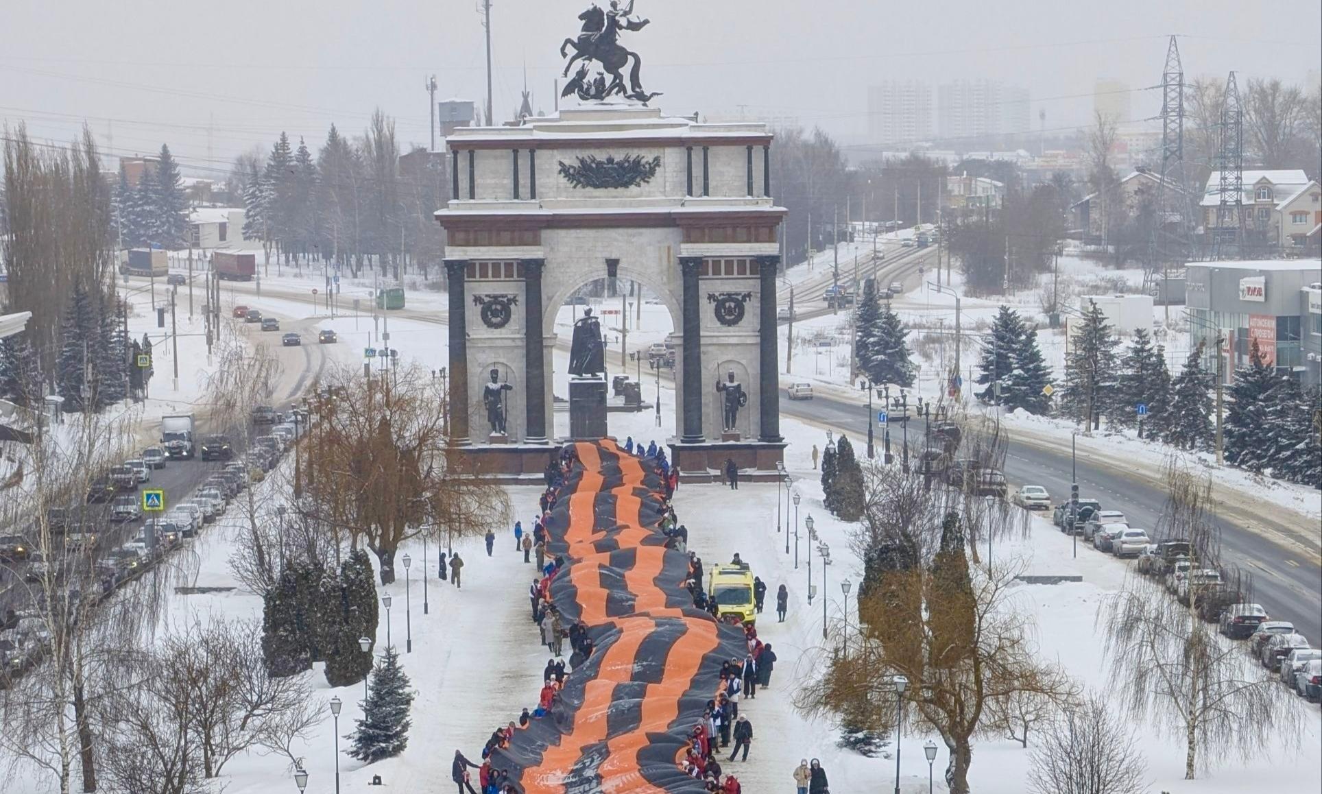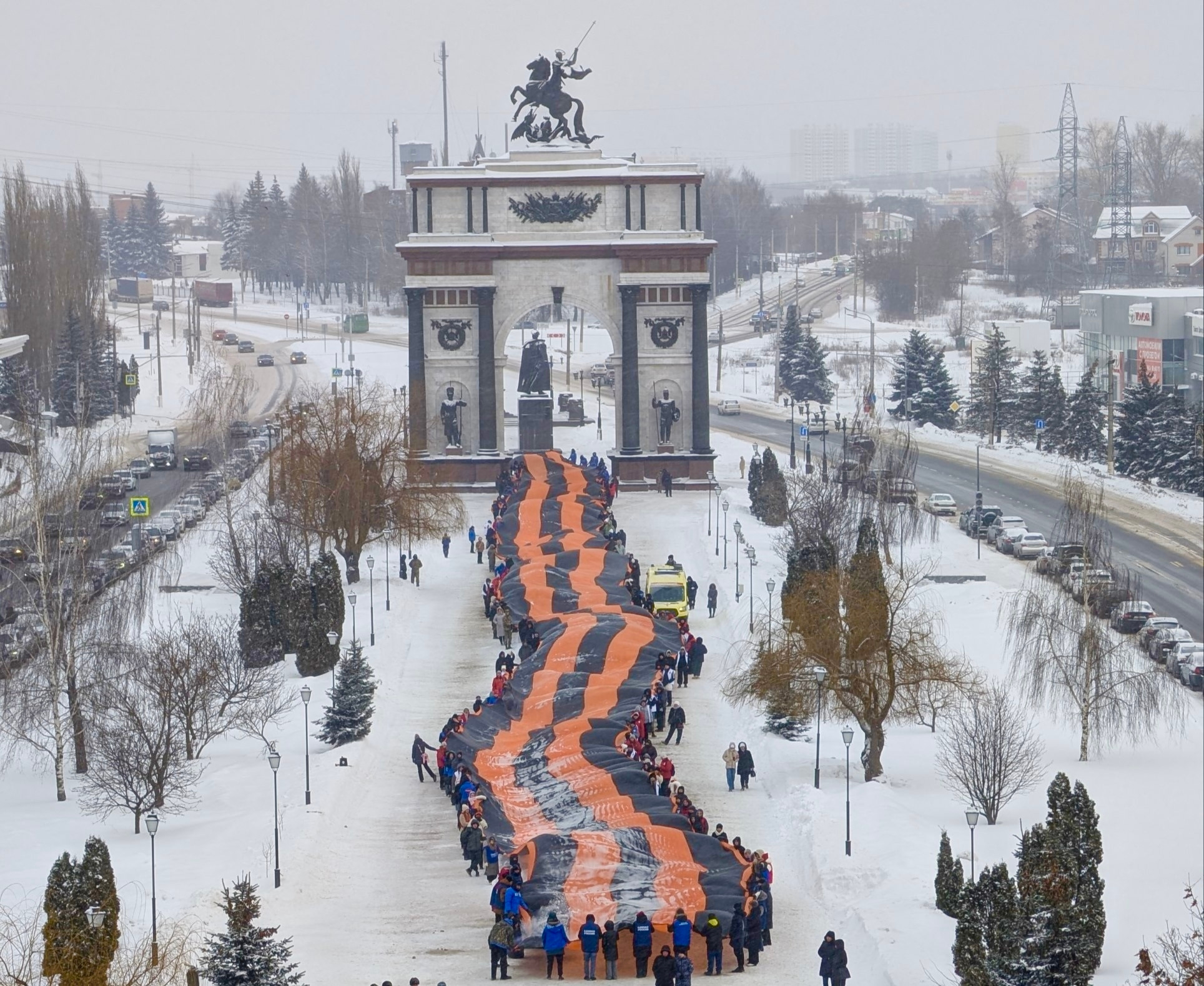 Наши студенты совместно с волонтерами развернули гигантскую 150-метровую георгиевскую ленту, почтив память тысяч погибших за 463 дня оккупации.