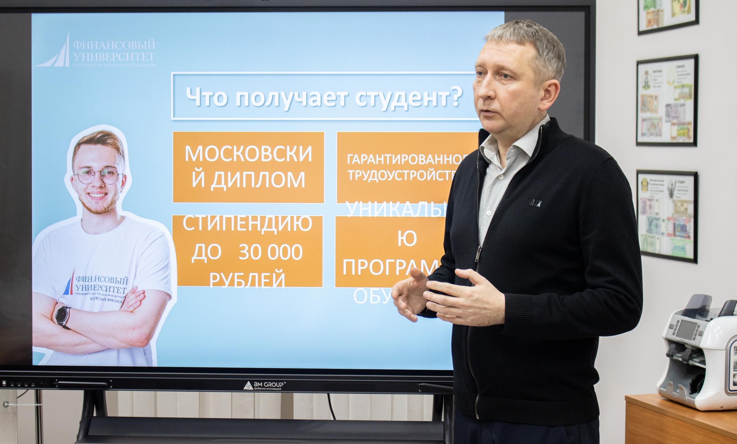 Сначала перед школьниками выступил Павел Алексеевич Клименко, к.э.н., заведующий кафедрой «Менеджмент и информационные технологии». Павел Алексеевич увлекательно рассказал: