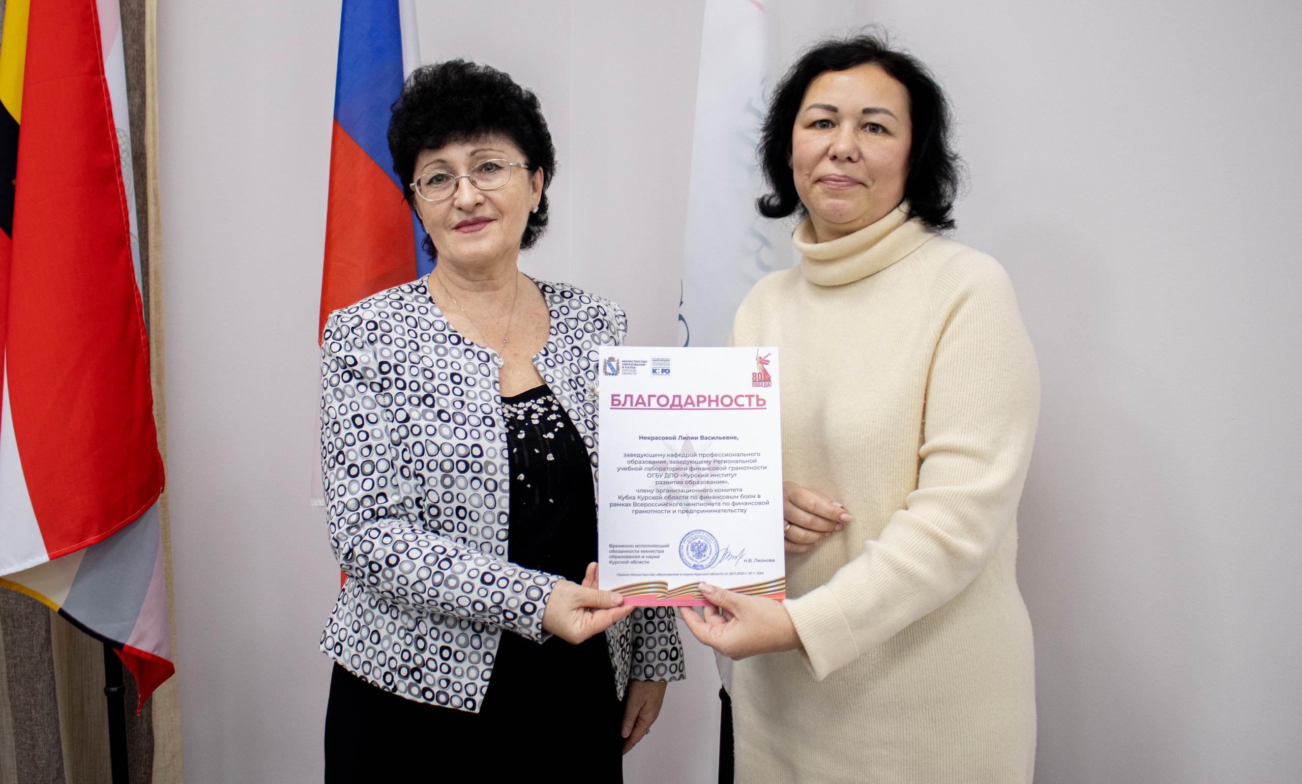 В рамках церемонии члены организационного комитета Кубка по финансовым «боям» были награждены благодарственными письмами Министерства образования и науки Курской области: