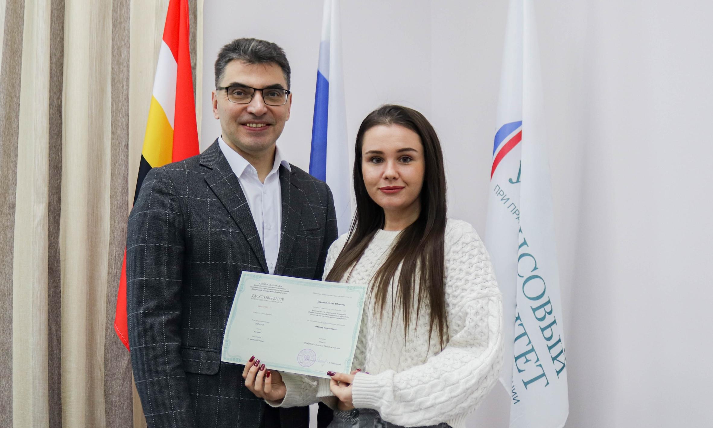 На торжественной церемонии вручения удостоверений о повышении квалификации каждого участника лично поздравил директор Курского филиала Финуниверситета Алексей Евгеньевич Ильин! С тёплыми словами и искренней благодарностью Алексей Евгеньевич вручил заслуженные документы.