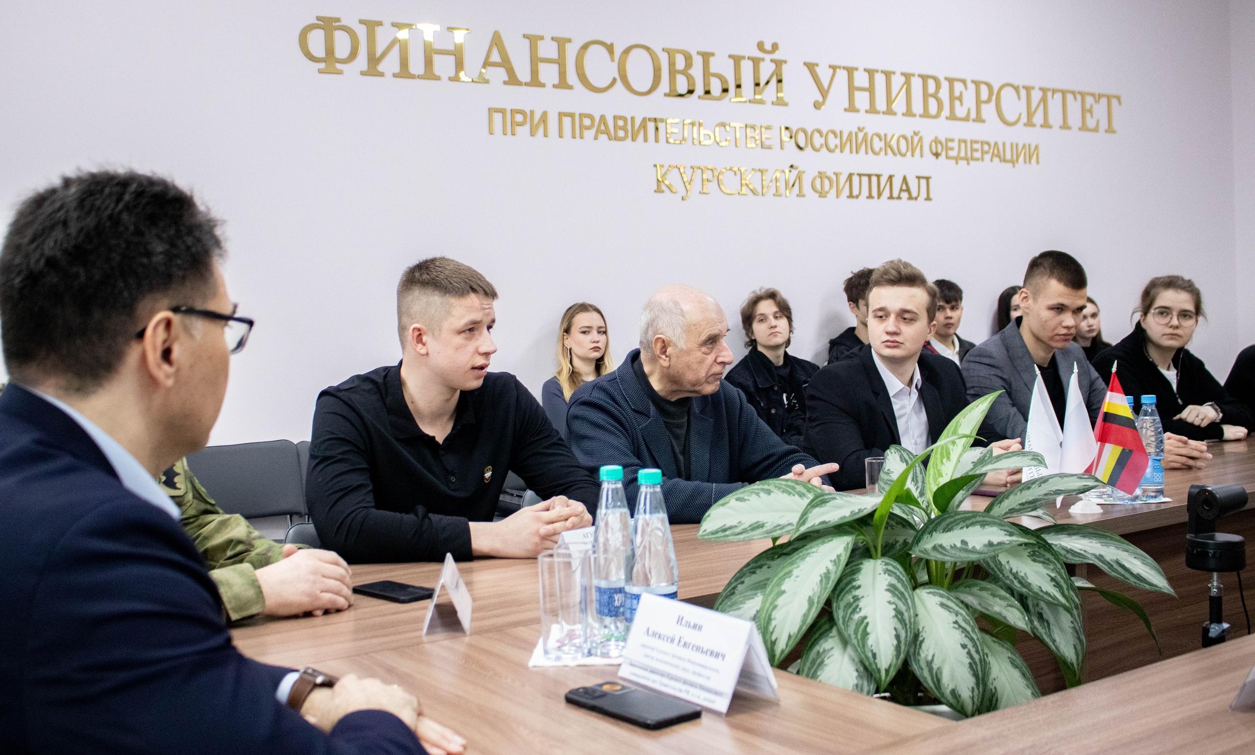 Встреча началась с приветственного слова Алексея Евгеньевича Ильина, директора Курского филиала Финуниверситета. Алексей Евгеньевич подчеркнул важность сохранения исторической памяти и передачи традиций патриотизма молодому поколению, а также поблагодарил ветеранов за их бесценный вклад и готовность делиться опытом
