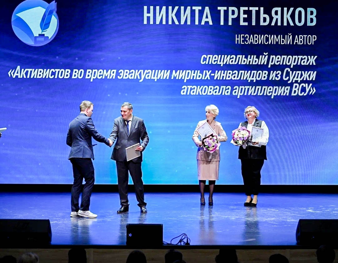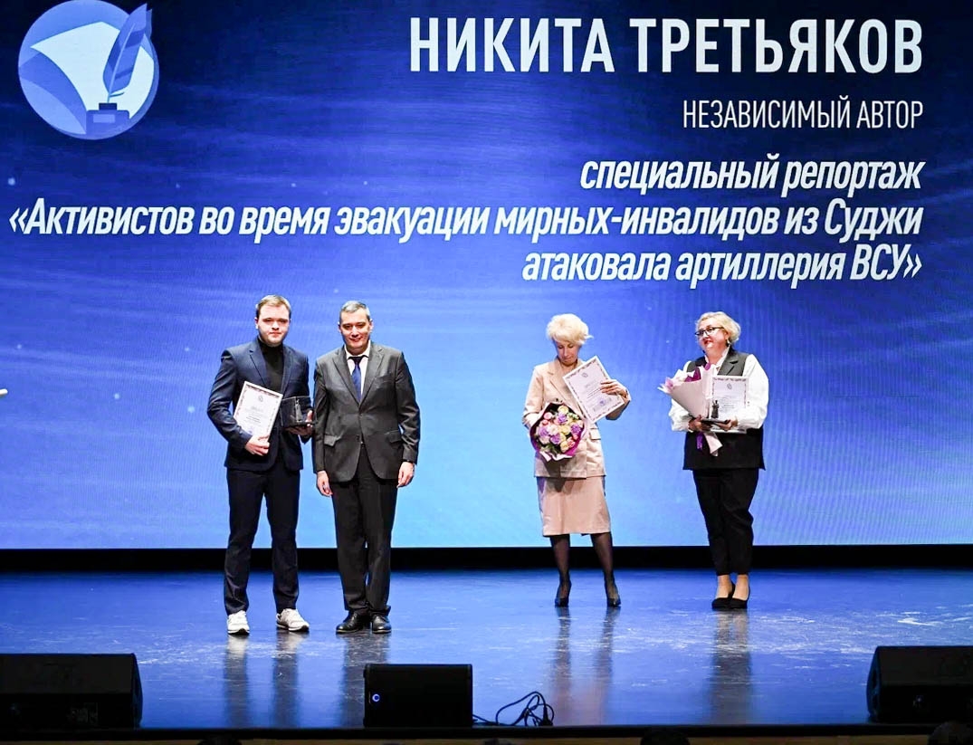 Губернатор Курской области Александр Хинштейн по случаю Дня российской печати отметил лучшие материалы региона. Сюжет «Актуального Курска» об эвакуации мирных жителей из Суджи признан лучшей интернет‑публикацией 2025 года. Независимый спецрепортаж подготовил студент нашего филиала Никита Третьяков.