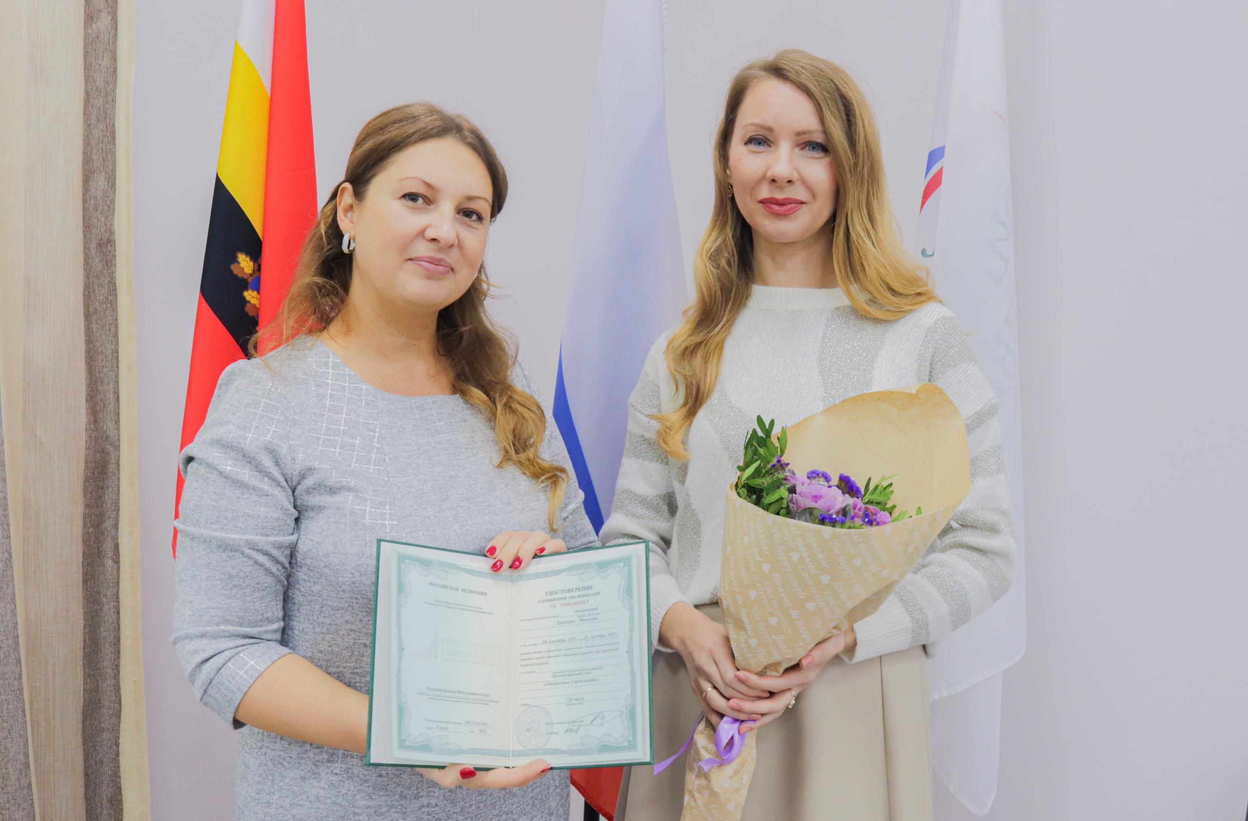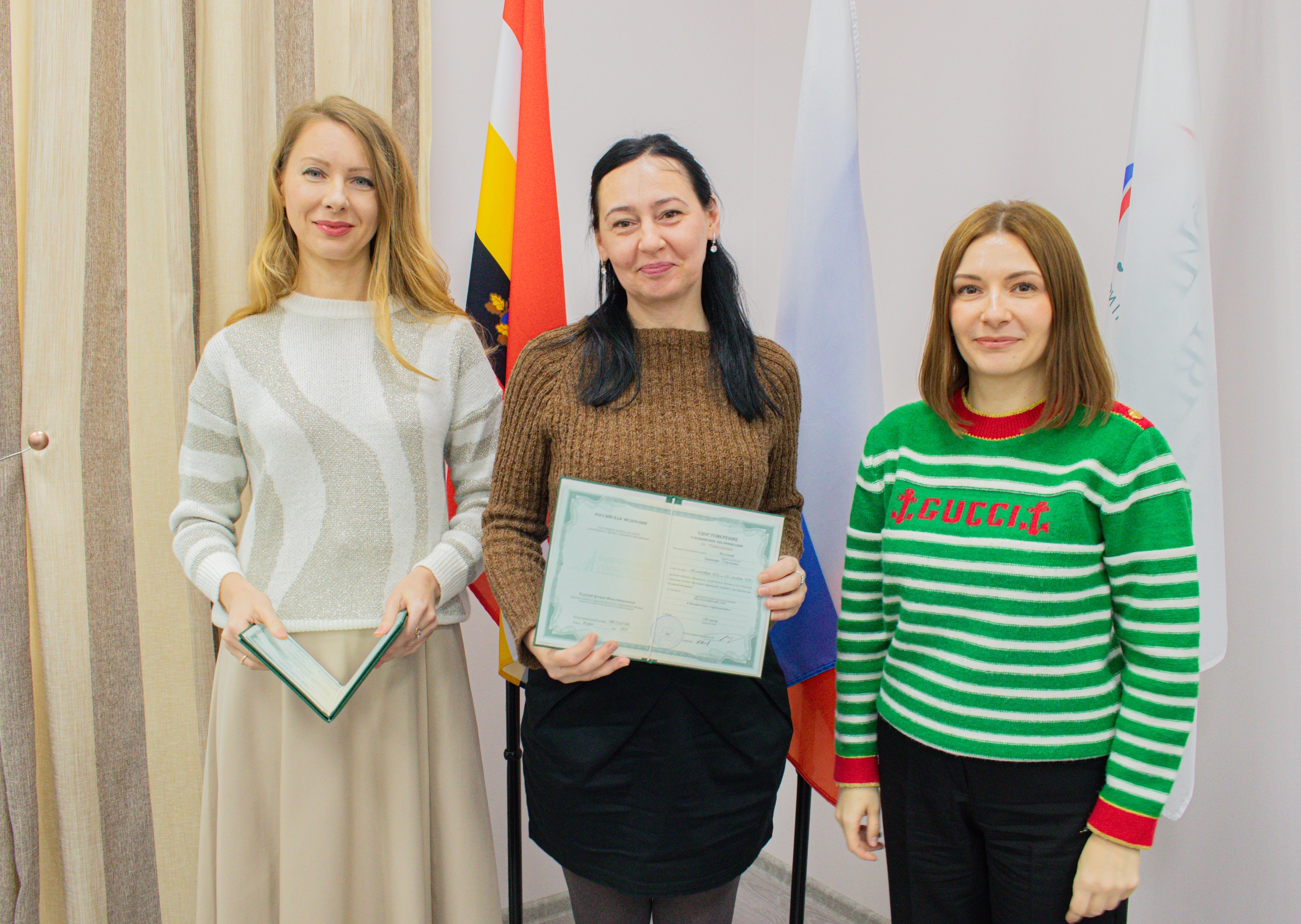 Во время вручения удостоверений преподаватель программы Ксения Евгеньевна Азжеурова поздравила выпускников с окончанием занятий и рассказала о возможностях развития карьеры бухгалтера в бюджетной сфере